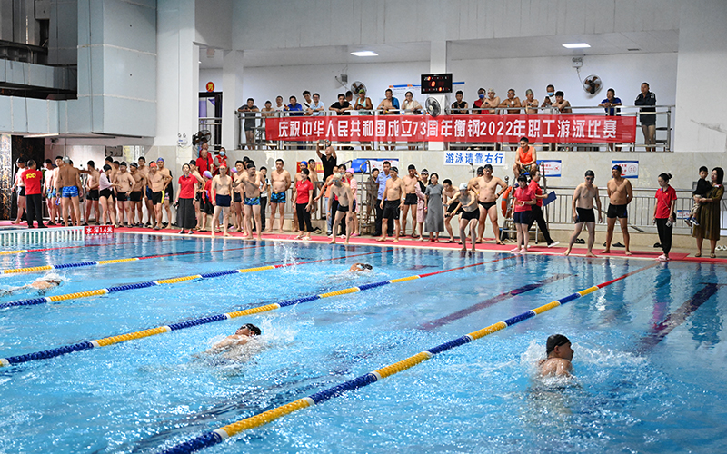 为热烈庆祝中华人民共和国成立73周年,落实“健康中国”战略,丰富和活跃职工业余文化生活,9月24日,衡钢工会组织近200名职工开展游泳比赛。 此次比赛设置了团体接力、领导组及个人男子、女子组四个大项,共12个小项。18个二级单位工会的游泳爱好者纷纷报名参赛。 团体4×50米接力赛前三名均打破去年纪录,炼铁工会代表队蝉联冠军,社区工会、直属工会代表队分获亚、季军...
