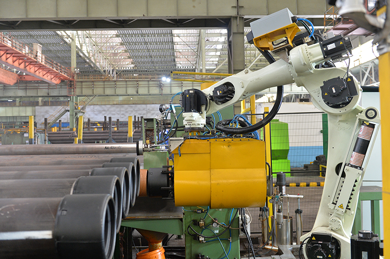 红灯闪亮,机器人用“眼睛”扫描,精准定位后,机械臂灵巧夹出一个外保护环,先竖直将其放在工位上,随后再次夹紧并横向运送到位。随着机械高速旋转,不过几秒,外保护环已经套好。这是衡钢管加工分厂智能车丝线上的一个工作场景,该线配置了3台“量身定制”的智能机器人,顺利实现钢管车丝后自动上外保护环、自动接箍上料和拧紧、自动上内保护环、自动通径检测、自动喷漆和喷标等。与以往人工作业相比,智能机器人让储存脂和螺纹...