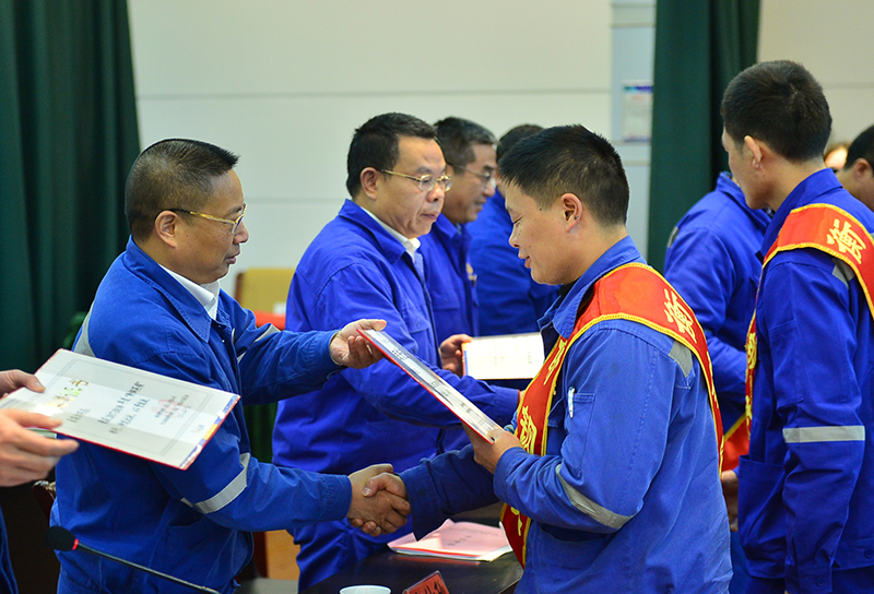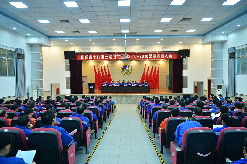 副总经理宋光鑫宣读表彰决定,对2017—2018年六个先进党委、7个先进单位、20名衡钢英模、35名优秀共产党员、102名先进生产(工作)者进行表彰。公司领导现场为先进集体、衡钢英模颁发奖牌和证书。副总经理程斯祥对职工代表所提出的七个共性意见和建议了进行了答复。