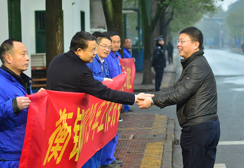欢天喜地的新年祝福音乐在清冽的春风里回荡,公司领导及相关职能部门负责人在公司2号门、3号门,手持宣传横幅迎接上班员工。火红的横幅上分别写着:衡钢2019年工作方针“引领市场提升品质强基固本砥砺奋进”和“祝福全体员工及家属新年快乐,身体健康,工作顺利,事业有成,家庭幸福”的标语。多年以来,公司工会组织领导迎接员工进厂上班,既向员工恭贺新年,又宣传了公司新一年的工作方针。