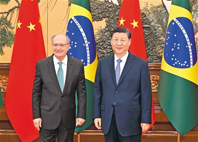 新华社北京6月7日电 (记者孙奕)6月7日下午,国家主席习近平在北京人民大会堂会见来华正式访问的巴西副总统阿尔克明。