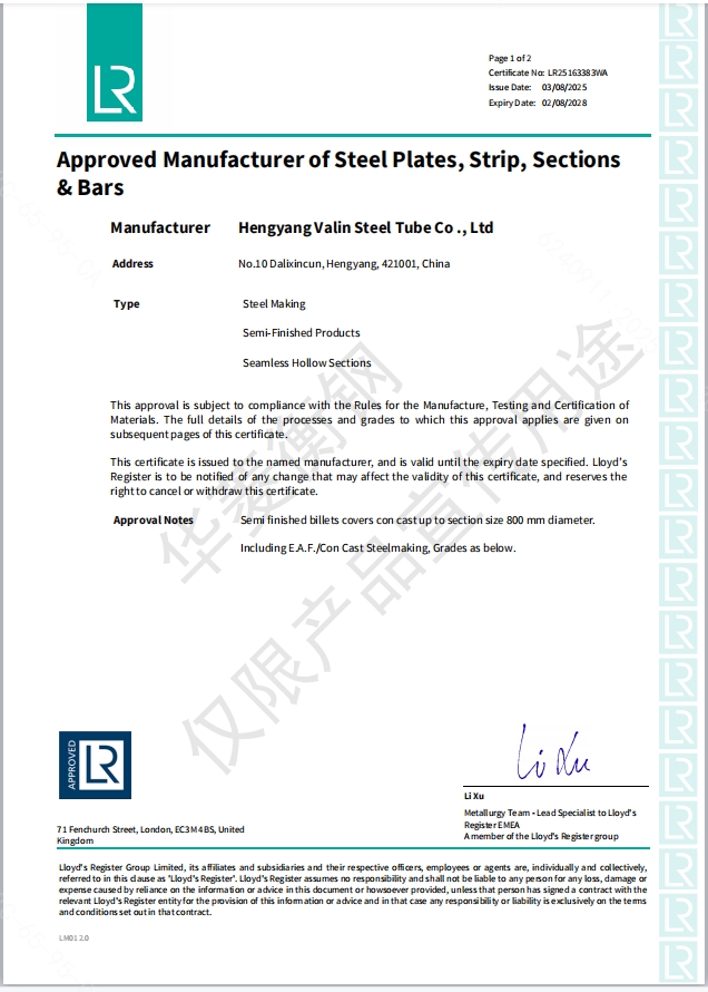 英国Lloyd船级社碳锰钢合金钢坯料证书